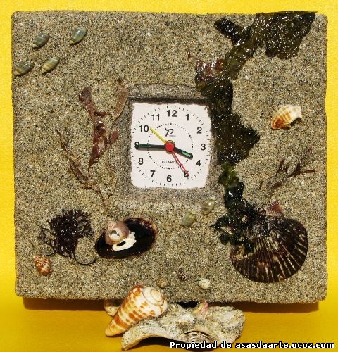 Base arenada, aplique de caracoles, algas y erizos de mar.